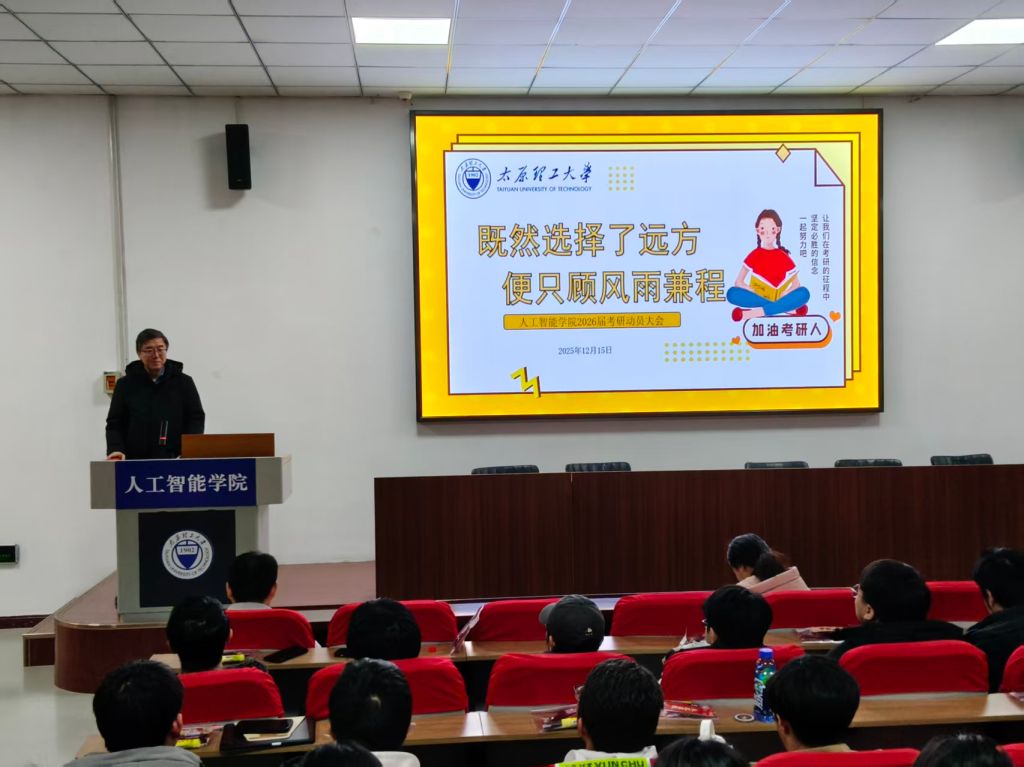 2025年12月15日,yl6809永利集团2026届毕业生考研动员会在学院一楼报告厅举行。学院党委副书记樊利民、副院长黄棣、学工办副主任王铭聪出席活动,会议由辅导员宋晶主持。