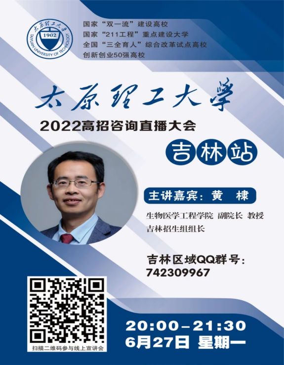 2022年yl6809永利集团本科招生工作,采用线上宣讲方式,生物医学工程学院负责吉林地区相关工作,黄棣教授将于6月27日20:30-21:00点,进行线上宣讲,请广大考生和家长关注。